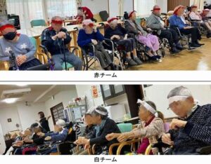 体操をして、体を動かし、みなさん元気に過ごされています。