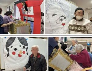 福笑いでは出来上がりの顔に大いに盛りあがり